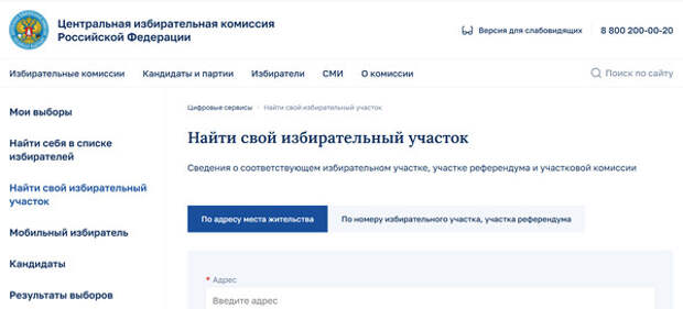 На сайте ЦИК России доступен сервис «Найти свой избирательный участок». Вбив свой адрес, вы получите полную информацию: адрес участка, телефон и даже точку на карте.
